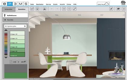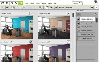 Wir haben das innovative Visualisierungsprogramm SPECTRUM 5. Individuelle Gestaltungen werden anhand eigener Fotos und einer grossen Bildbibliothek mit Farbe, Wandtechnik, Bodenbelag, Stoff und Profilen erstellt. Entwürfe können gespeichert, gedruckt und präsentiert werden. Ein grosser Nutzen für unsere Kunden: Wissen wie es aussieht, bevor man anfängt zu Arbeiten. Keine Bemusterungen vor Ort mehr, etc. Für weiter Fragen bitte kontaktieren Sie uns.