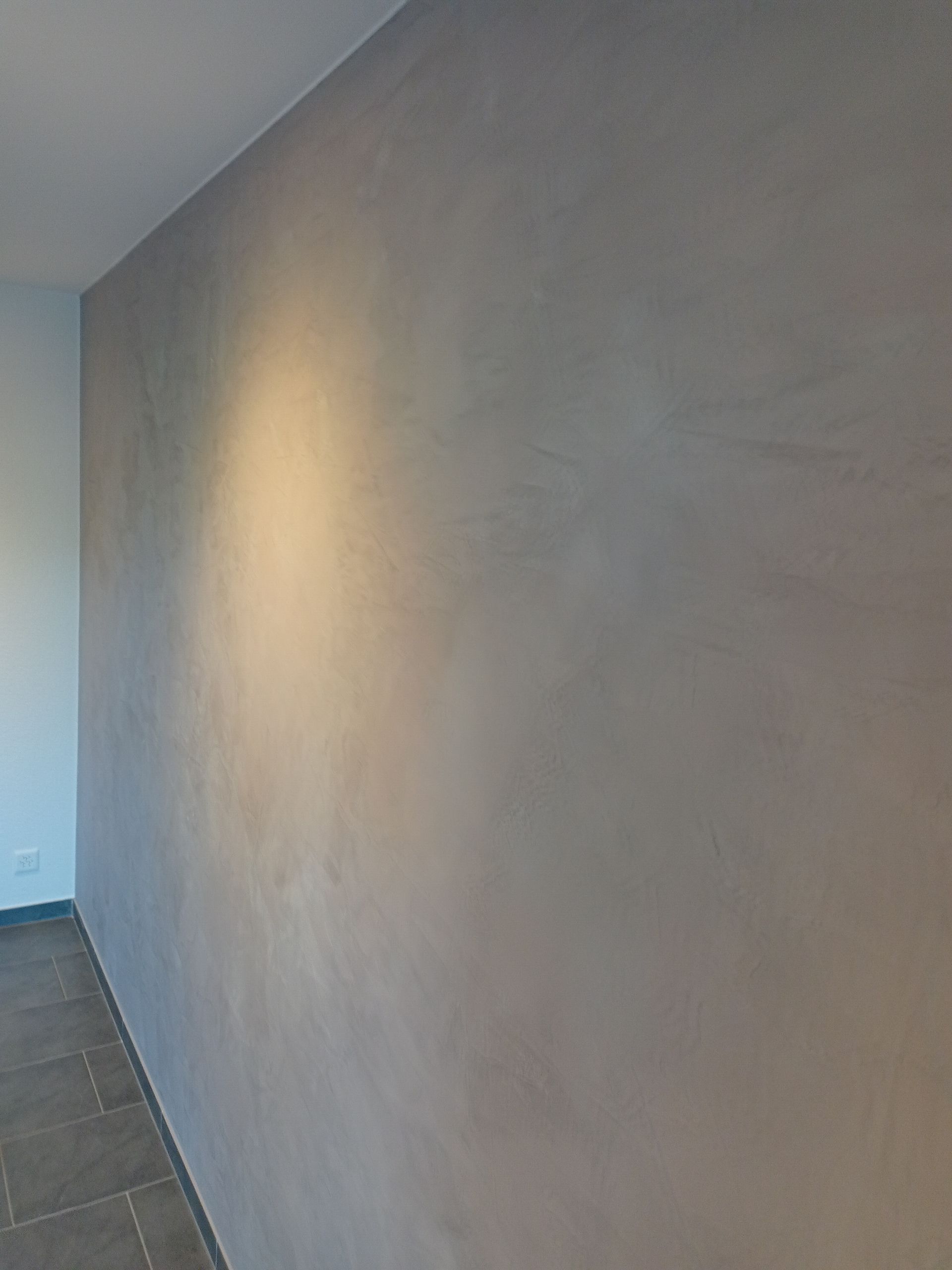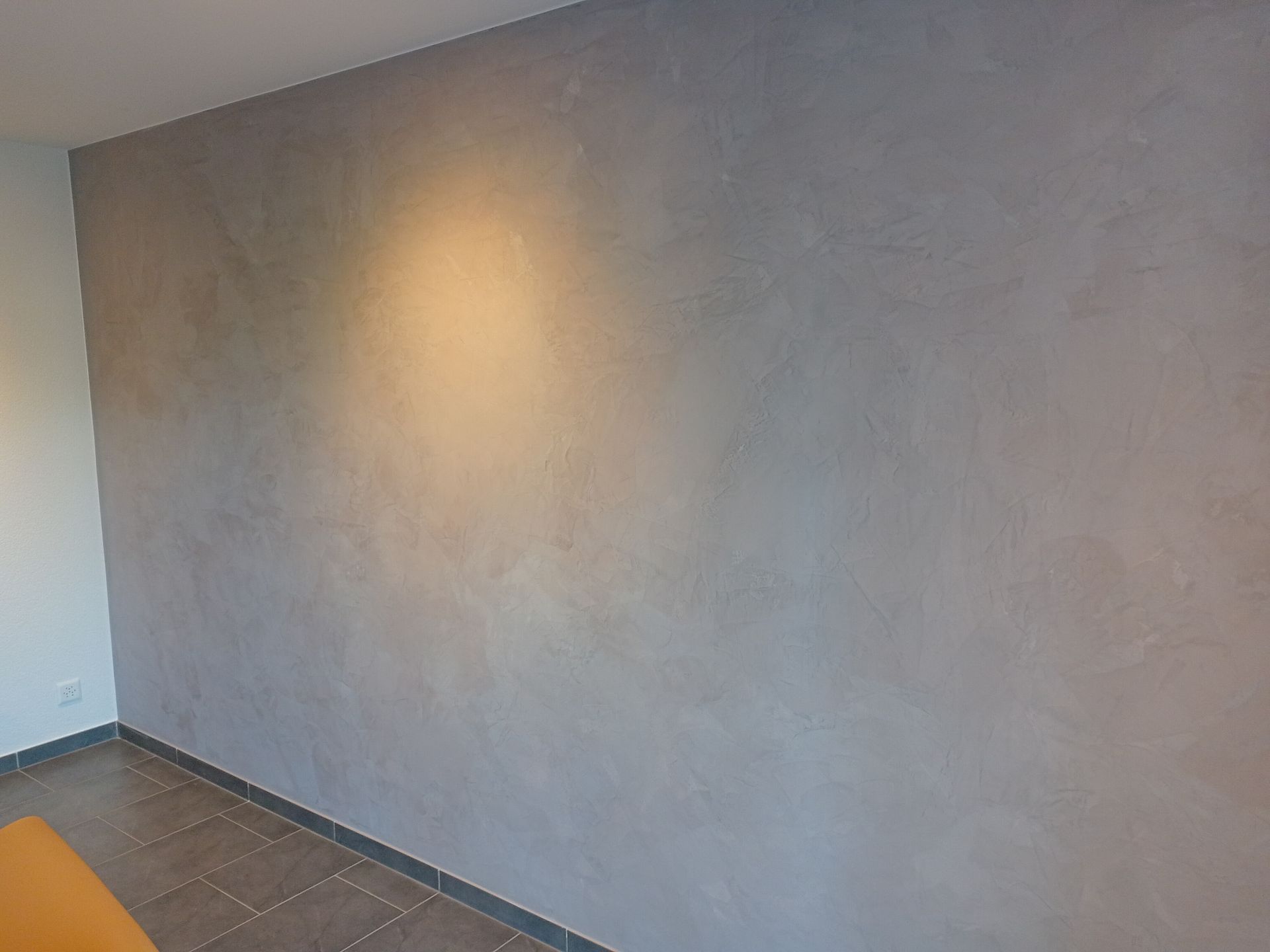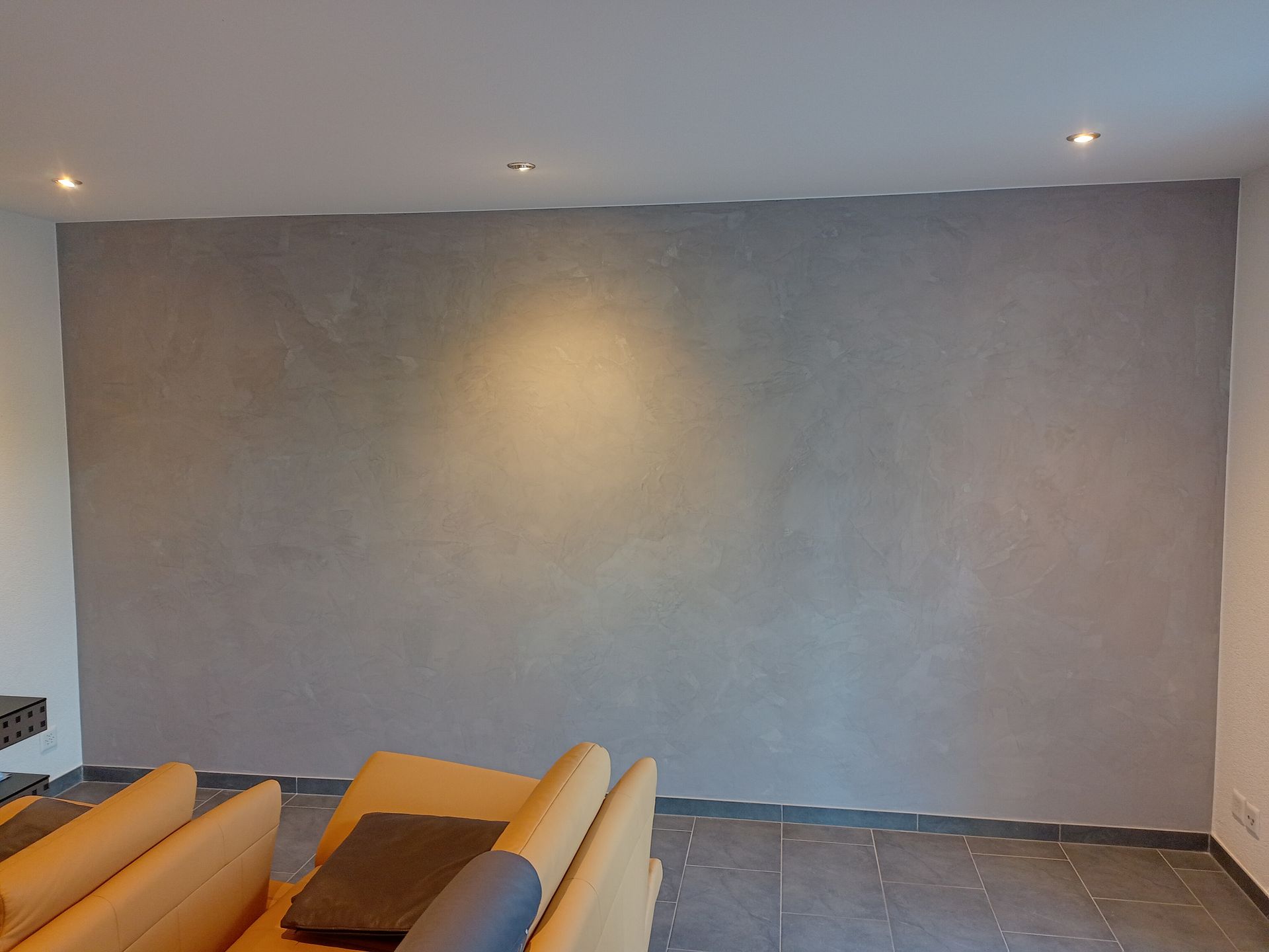 In Ersigen hatten wir einen Auftrag um ein Designelement in Betonoptik zu gestalten. Es bezieht sich auf das Aussehen von Beton, ohne tatsächlich aus diesem Material zu bestehen. Betonoptik kann durch die Verwendung von Materialien wie Spachtel erreicht werden, die das Aussehen und die Textur von Beton imitieren. Diese Ästhetik kann einen modernen, industriellen Look erzeugen und wird oft in minimalistischen Designs verwendet. Betonoptik ist auch sehr vielseitig und kann in verschiedenen Farben und Texturen erstellt werden, von glatten und polierten Oberflächen bis hin zu rauen und unregelmäßigen. Insgesamt ist Betonoptik eine stilvolle und moderne Möglichkeit, dem Raum ein industrielles und raffiniertes Aussehen zu verleihen.